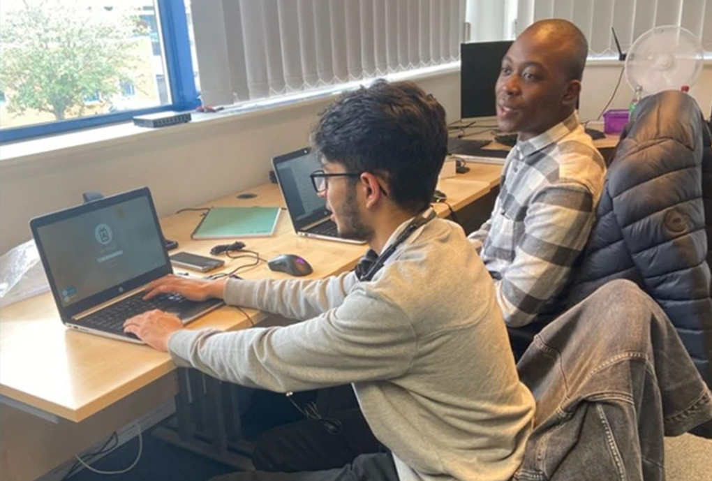 Ron and Ali, two new T Level Digital students in the first week of their placement at Chronicle Computing Ltd.
